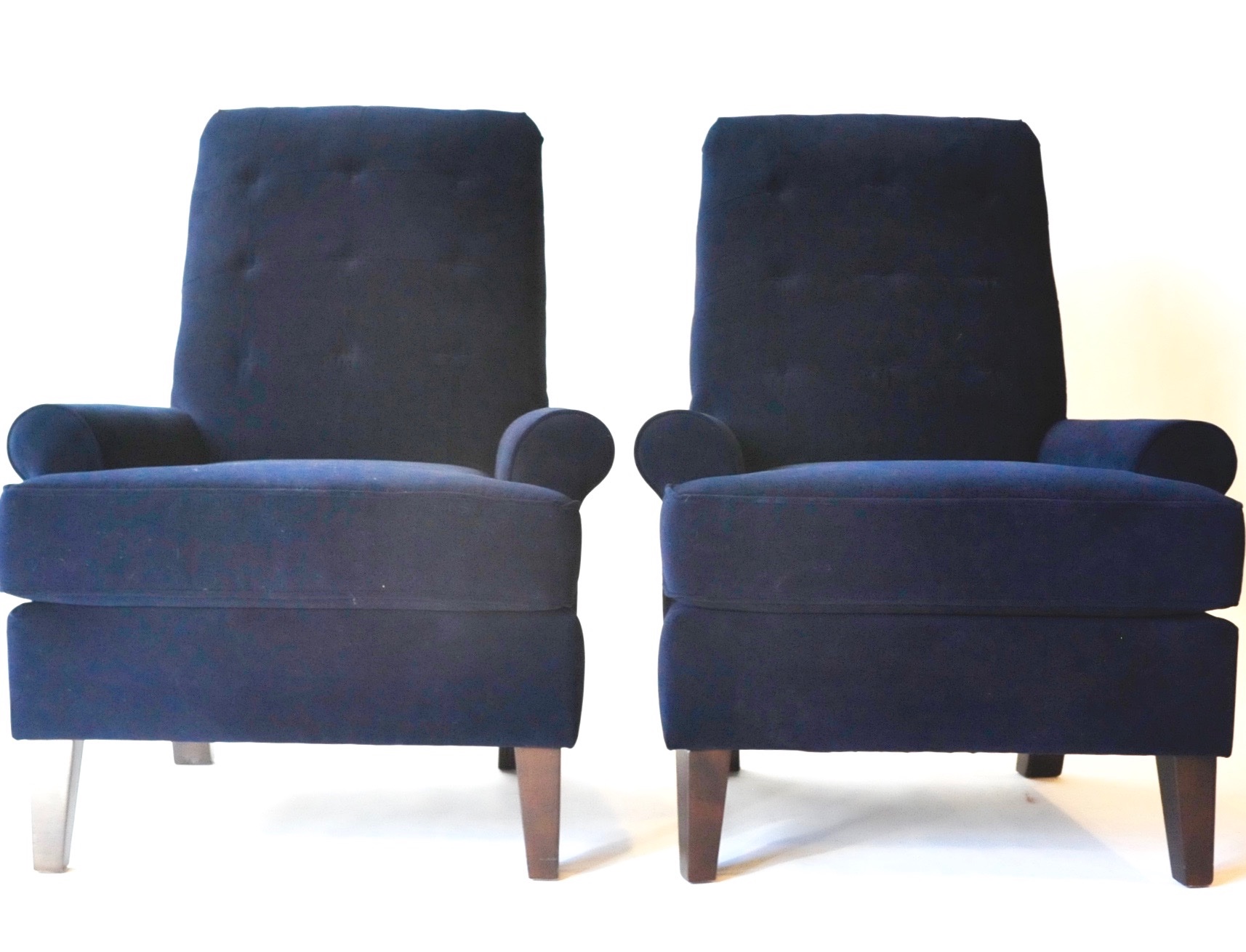 Blue velvet wing chair