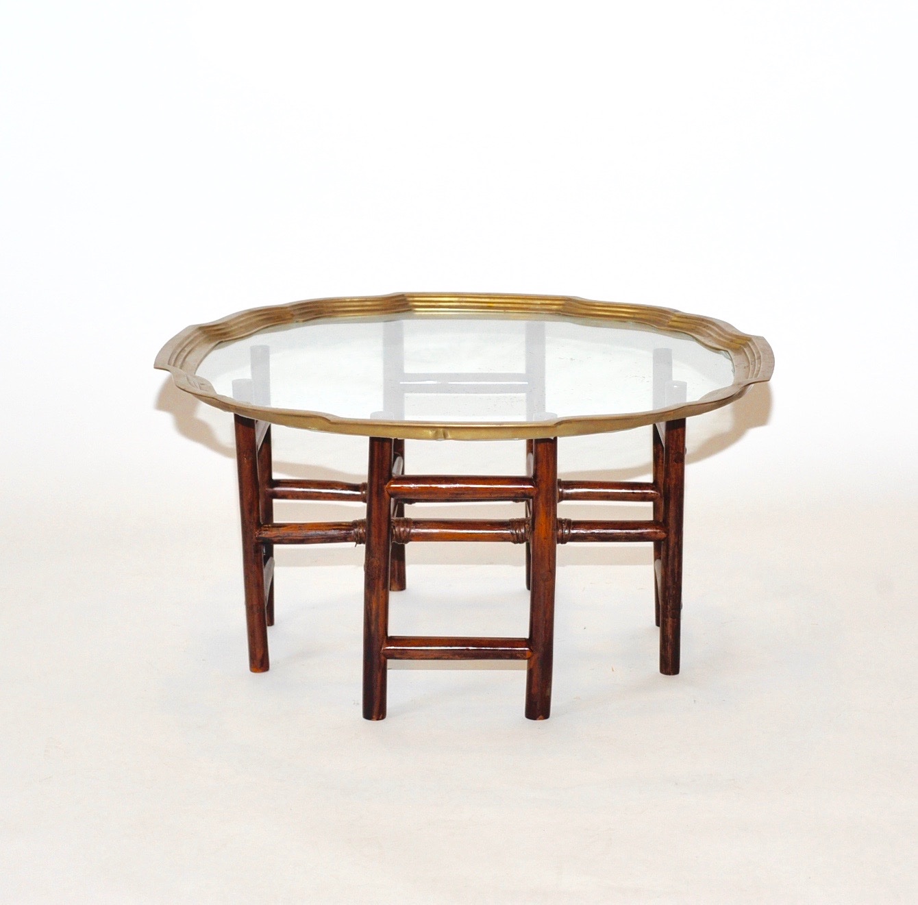 Brass And Glass Tray Table On Bamboo Stand