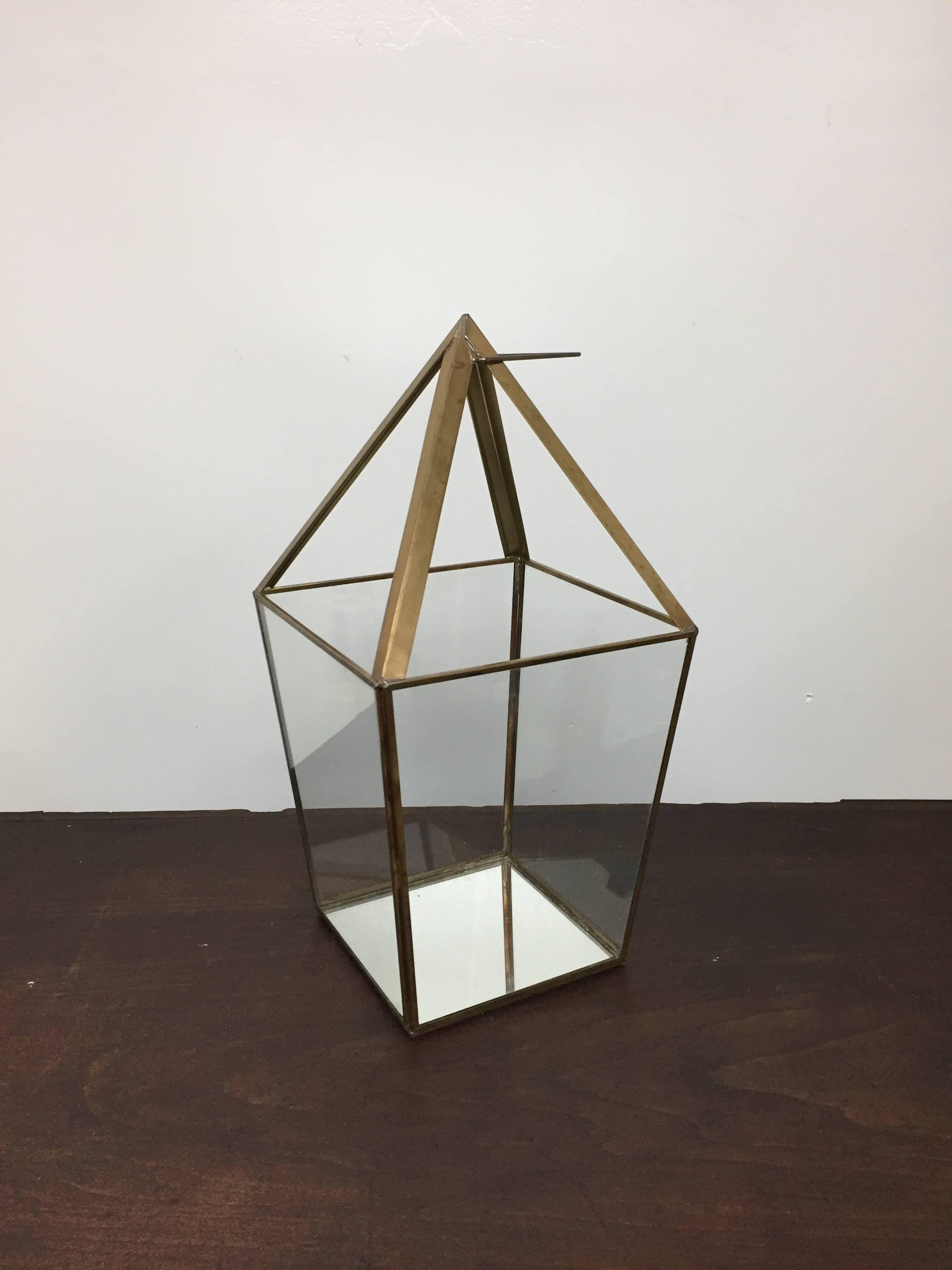 Brass Geometric Lantern/Terrarium with Mirrored Base