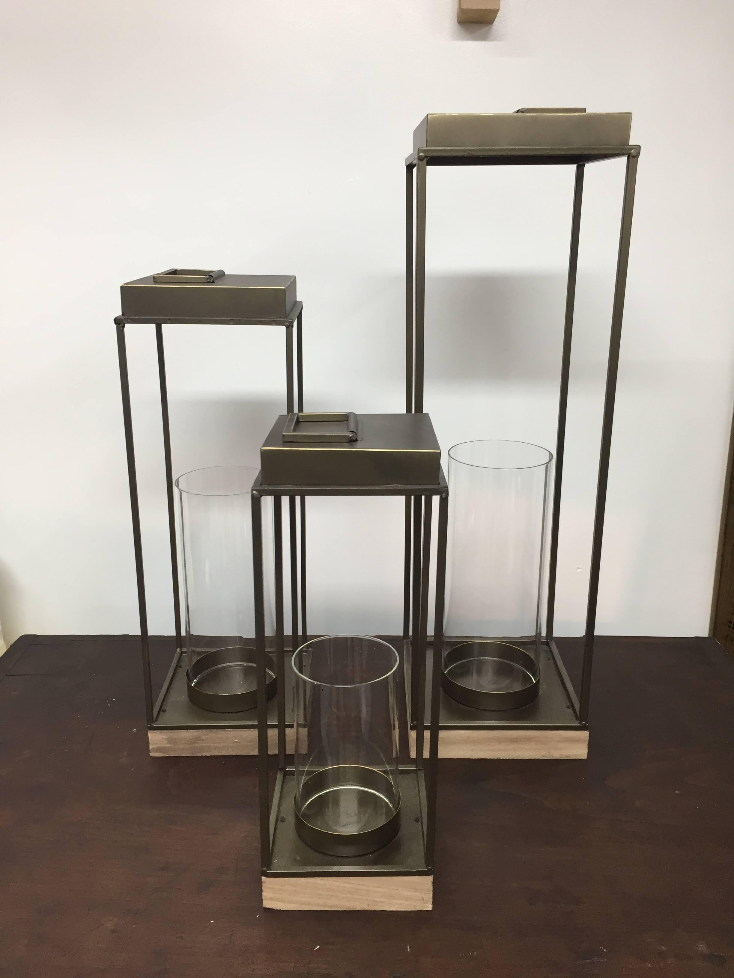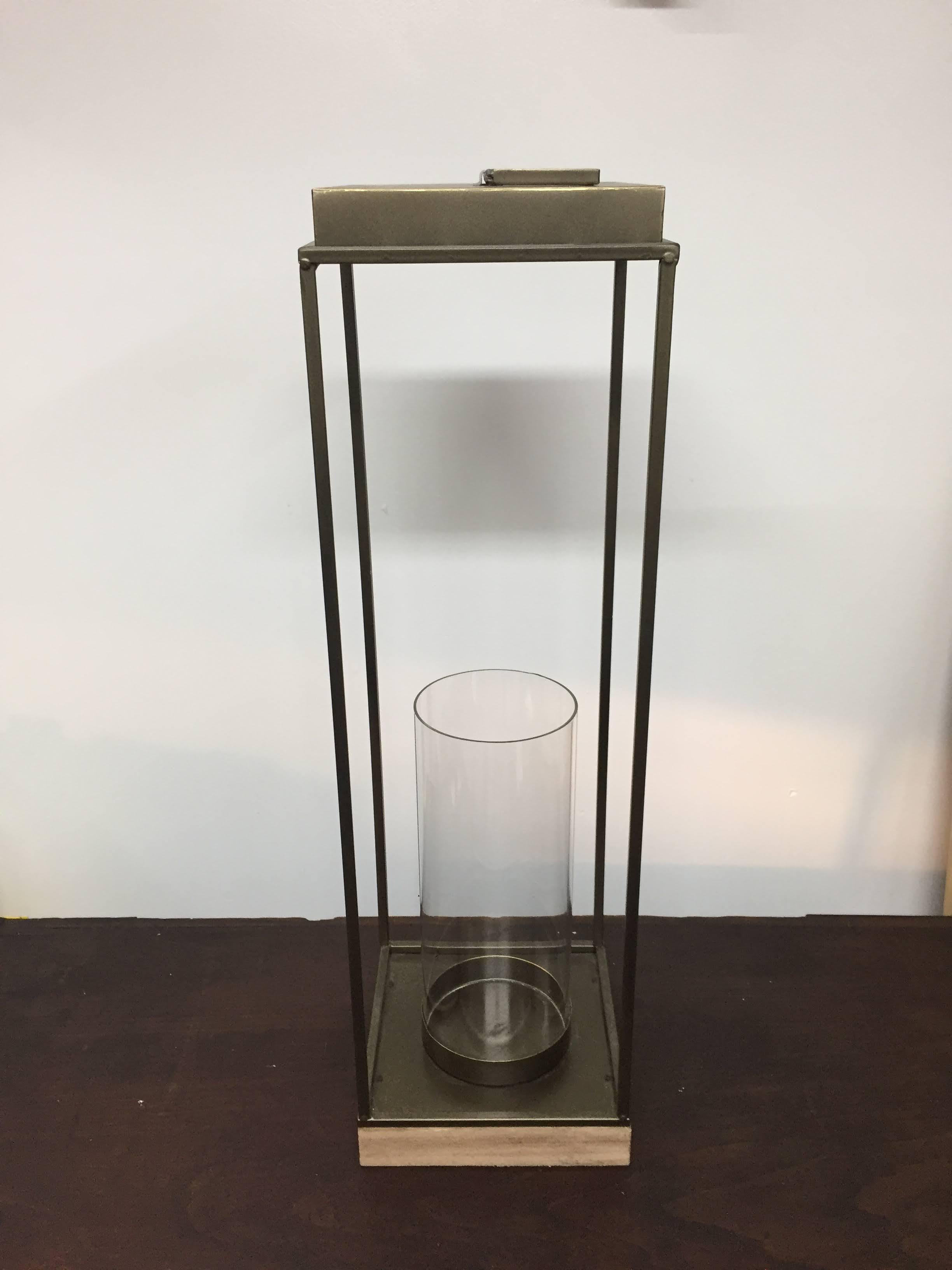 Brass Open Lantern with Metal Handle and Wooden Base - Large