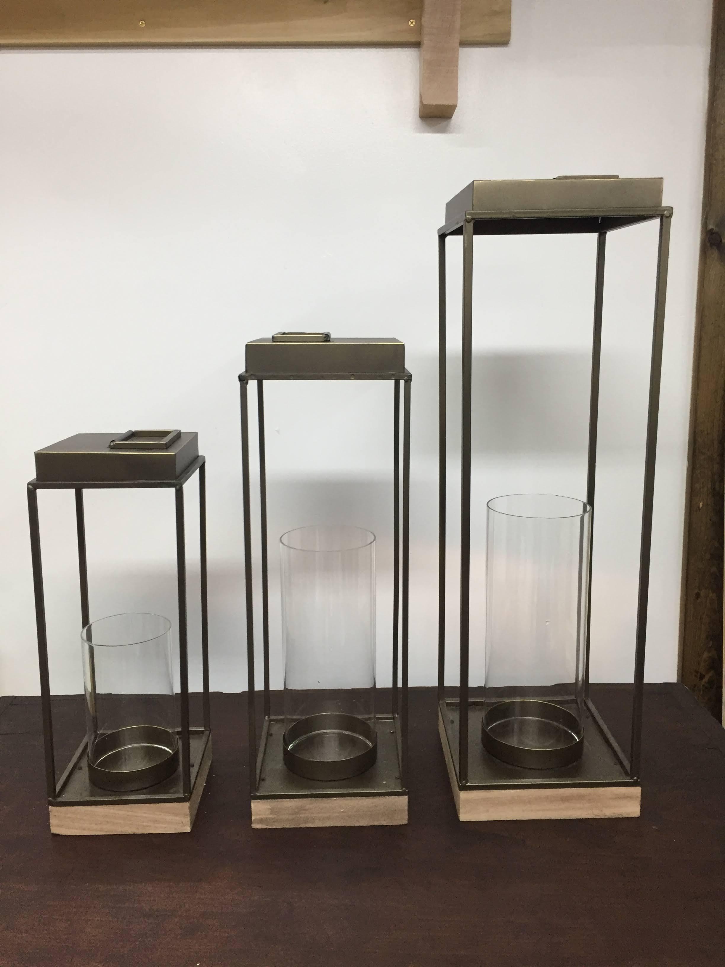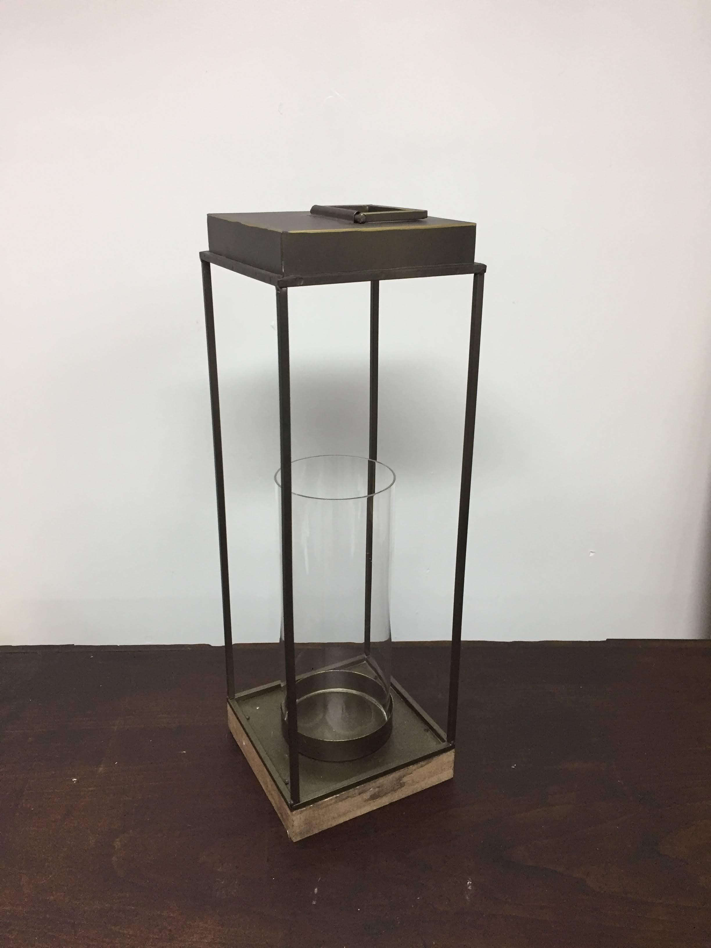 Brass Open Lantern with Metal Handle and Wooden Base - Medium