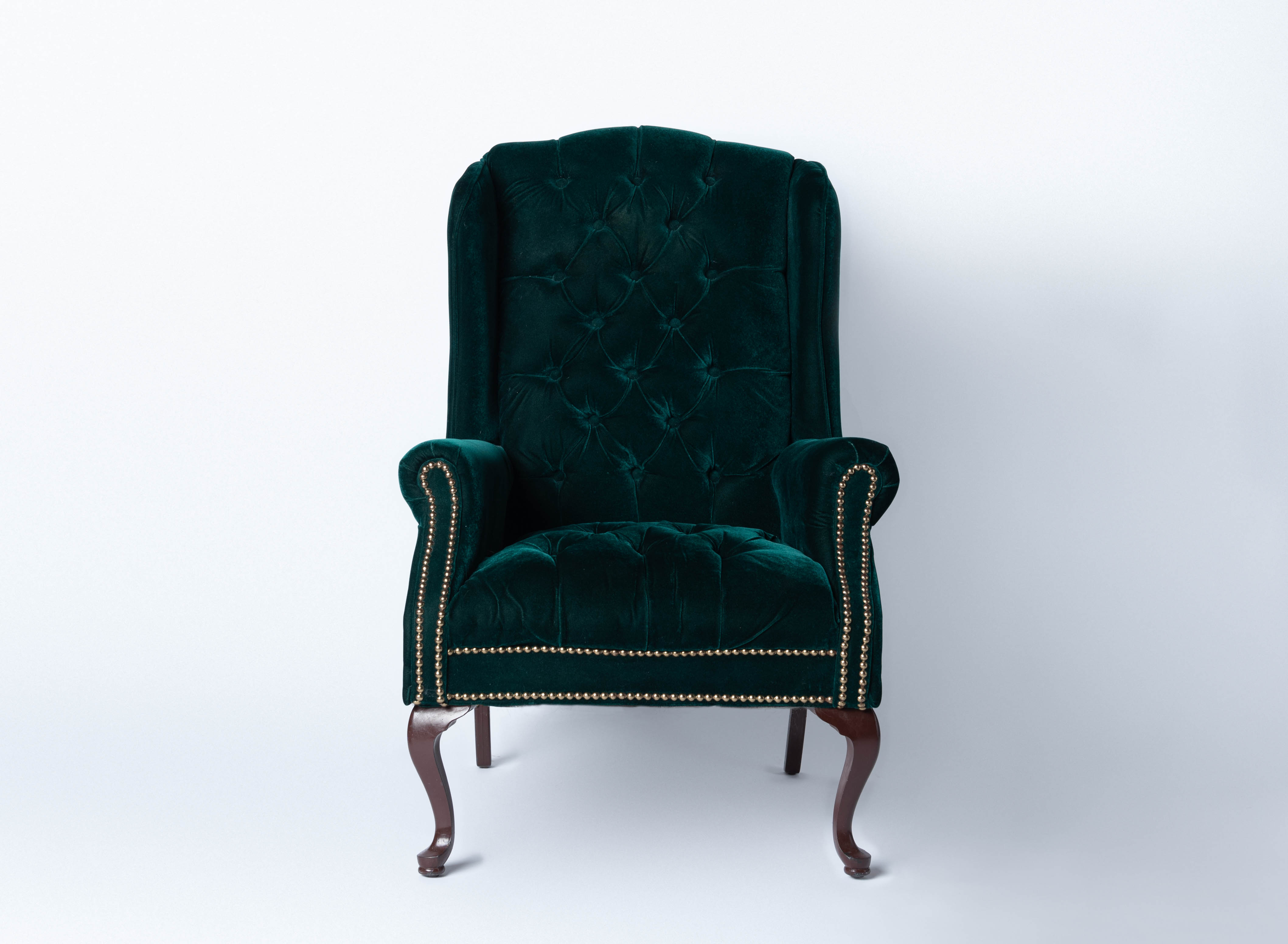 Forest green velvet tufted wingback chair