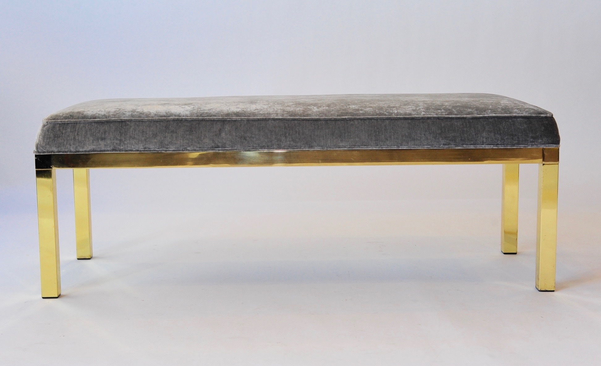 Gray Velvet Bench With Gold Base