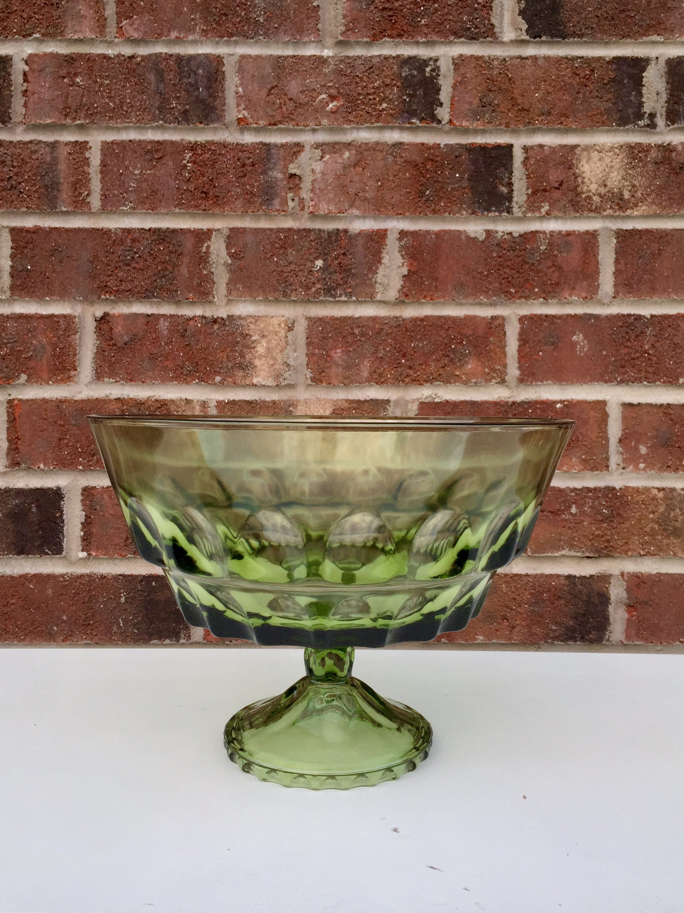 Green Dimpled Glass Trifle Bowl