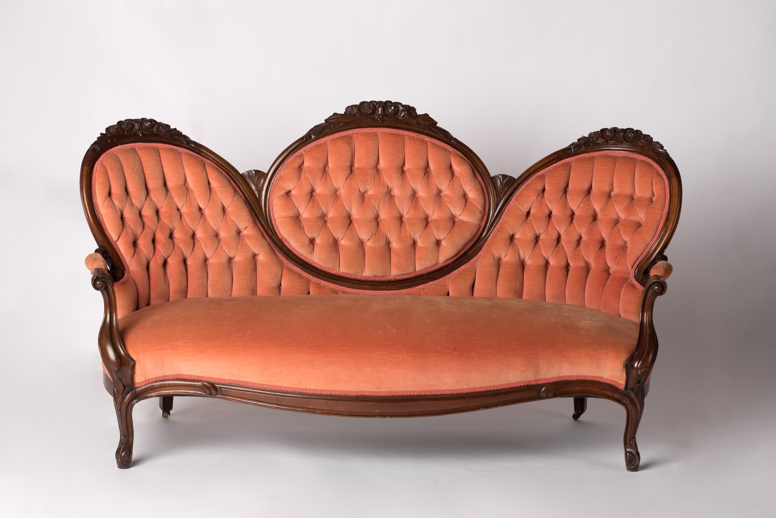Peach tufted settee