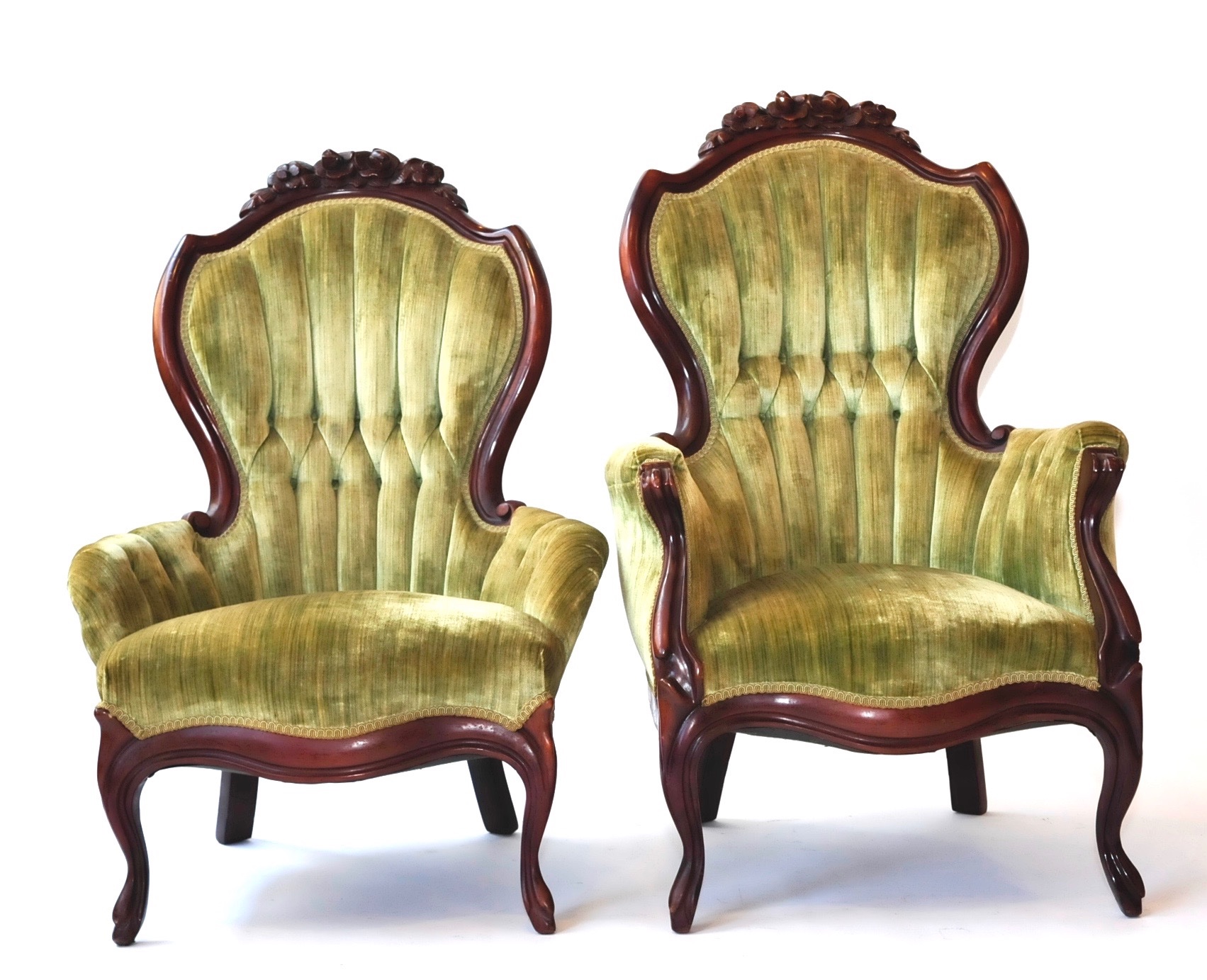 Light green velvet Victorian chair (his & hers)