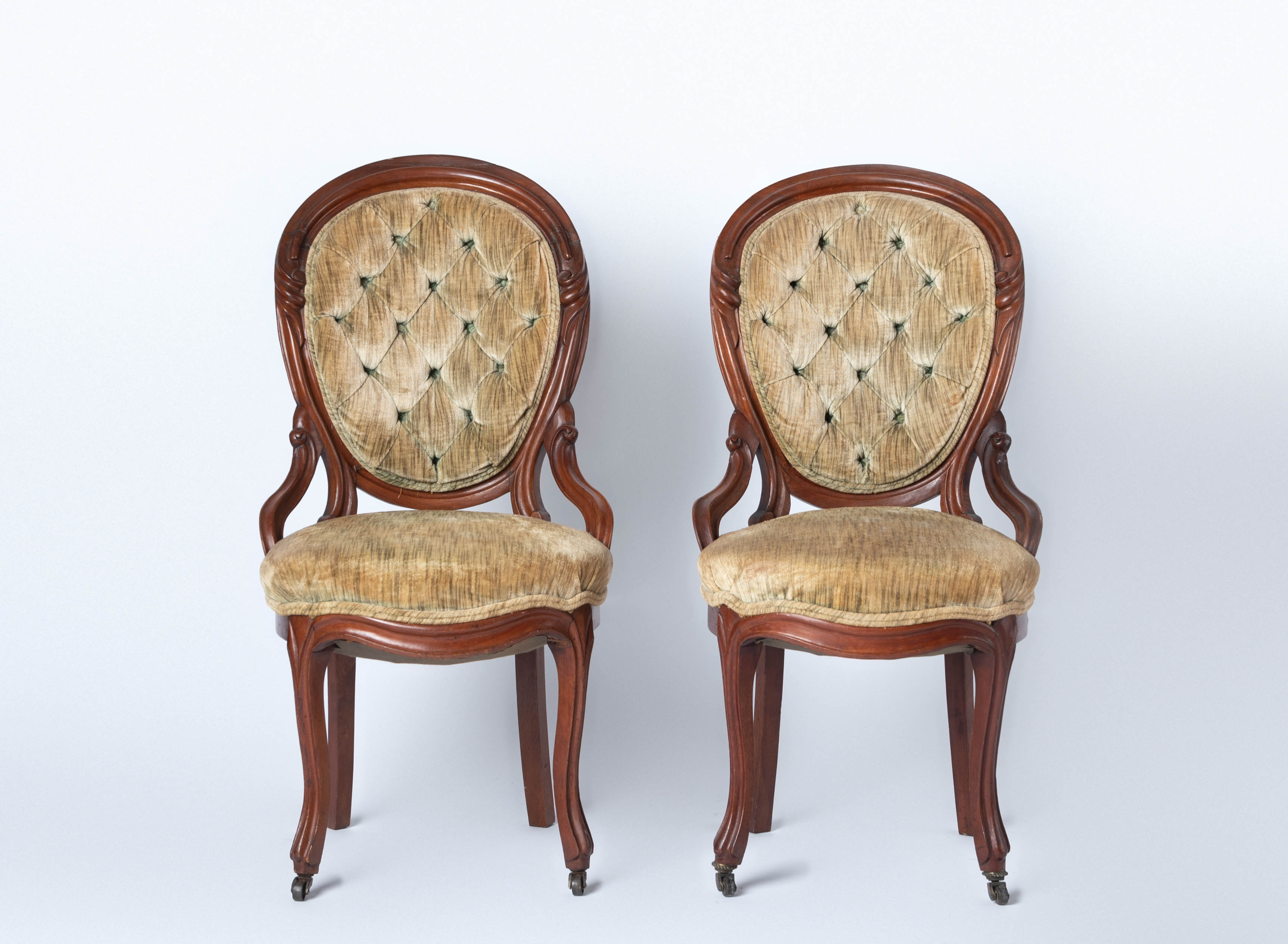 Green/yellow tufted velvet dining chairs with casters