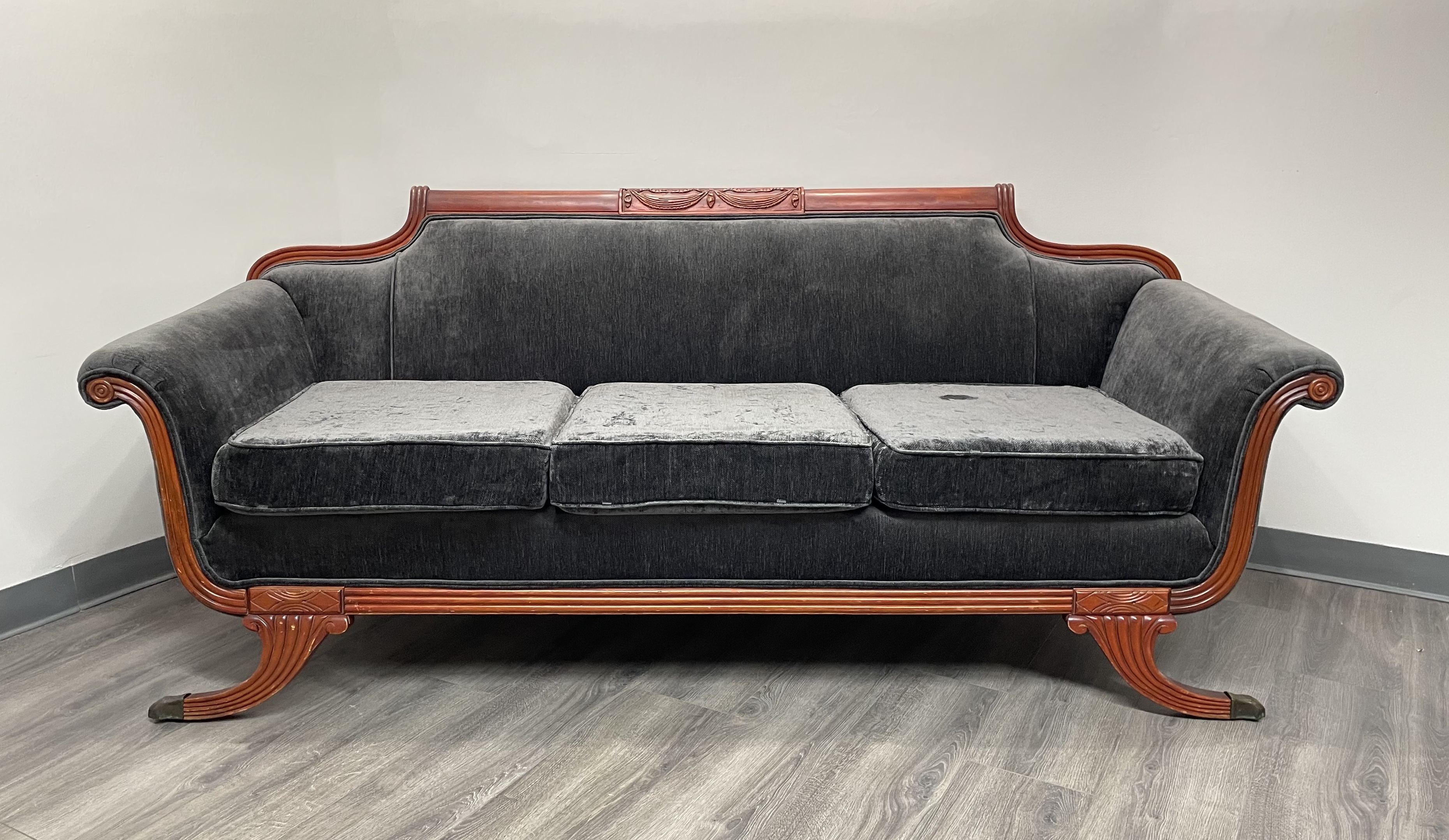 Dark gray herringbone print velvet