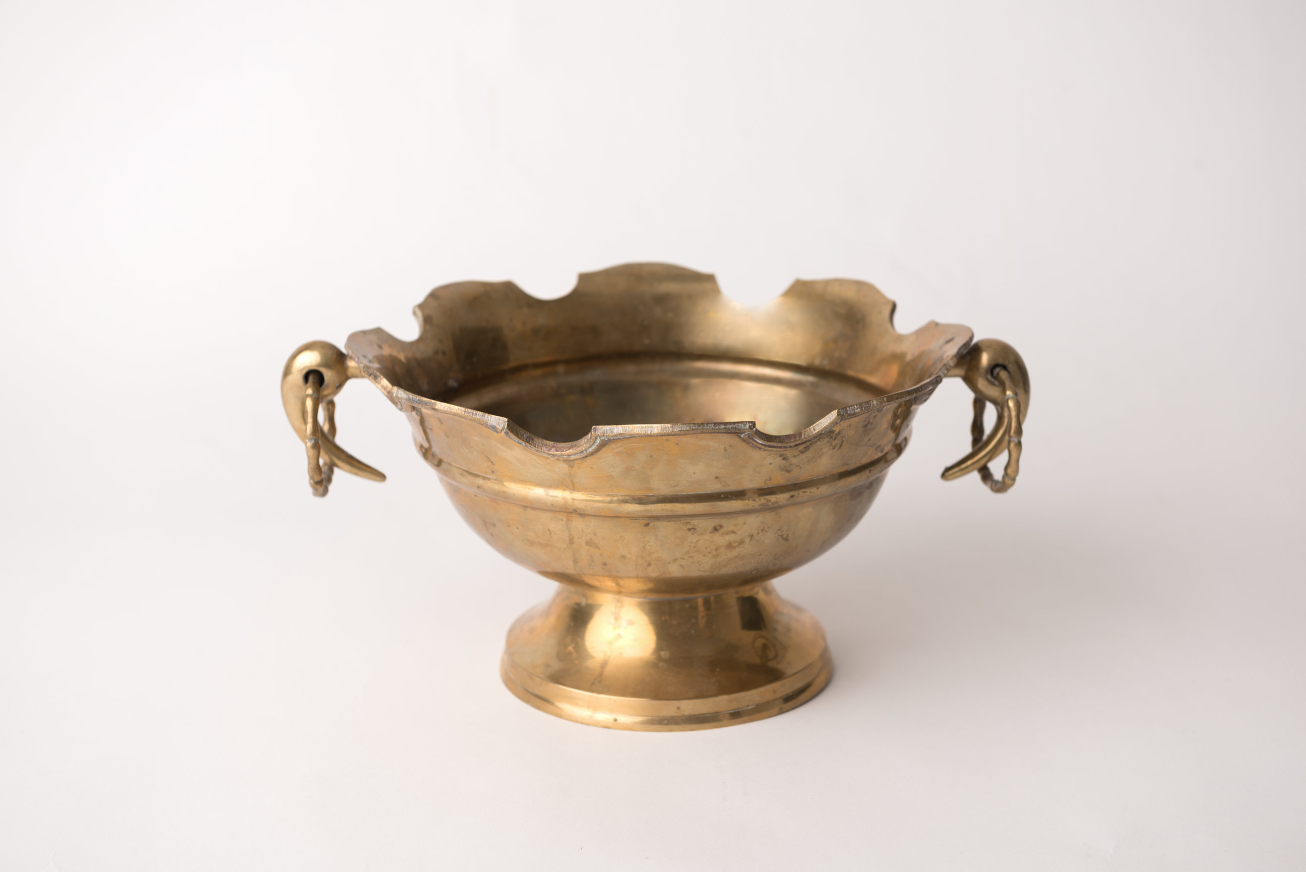 Large Brass Bowl on Pedestal with Talons