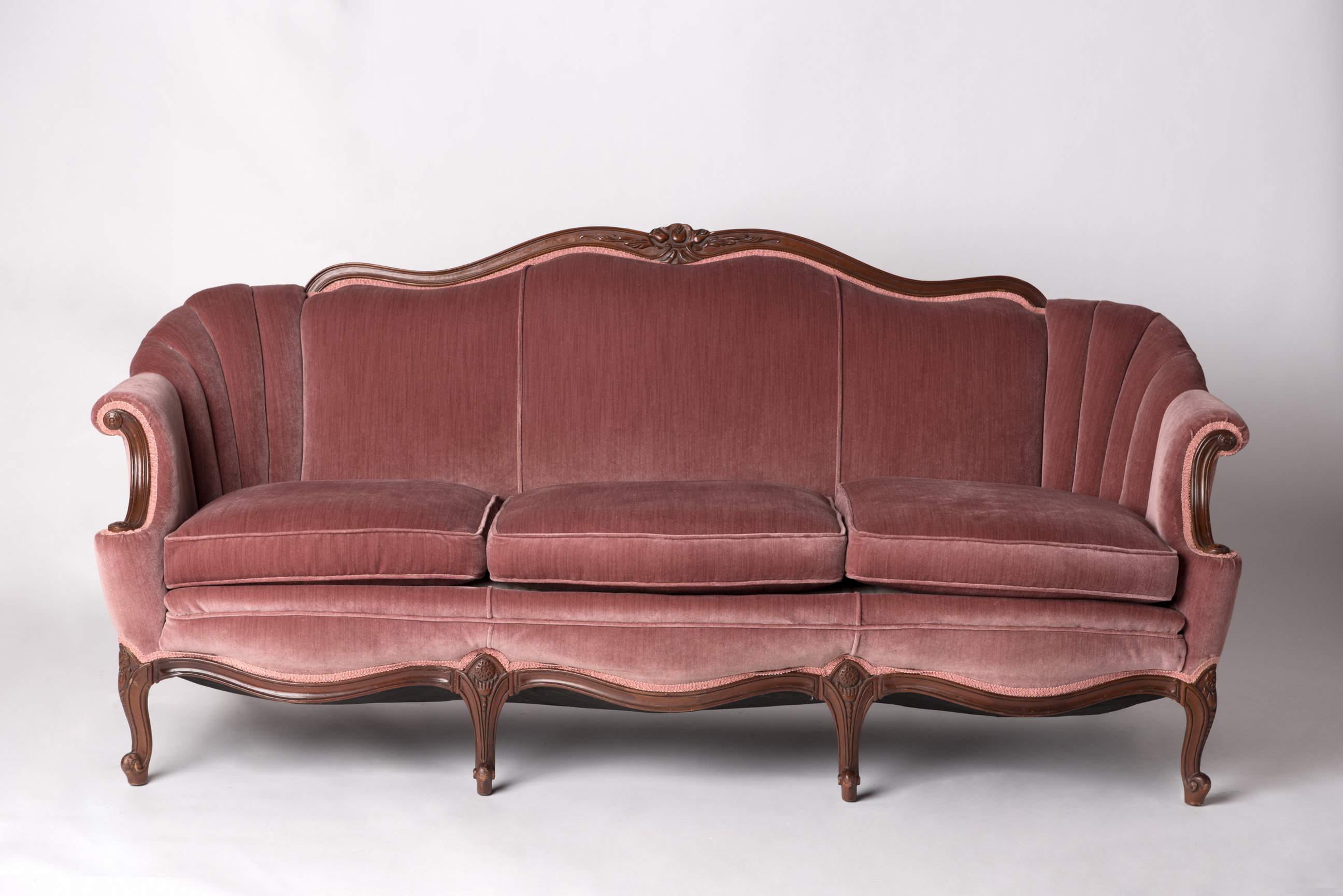 Light plum colored velvet sofa