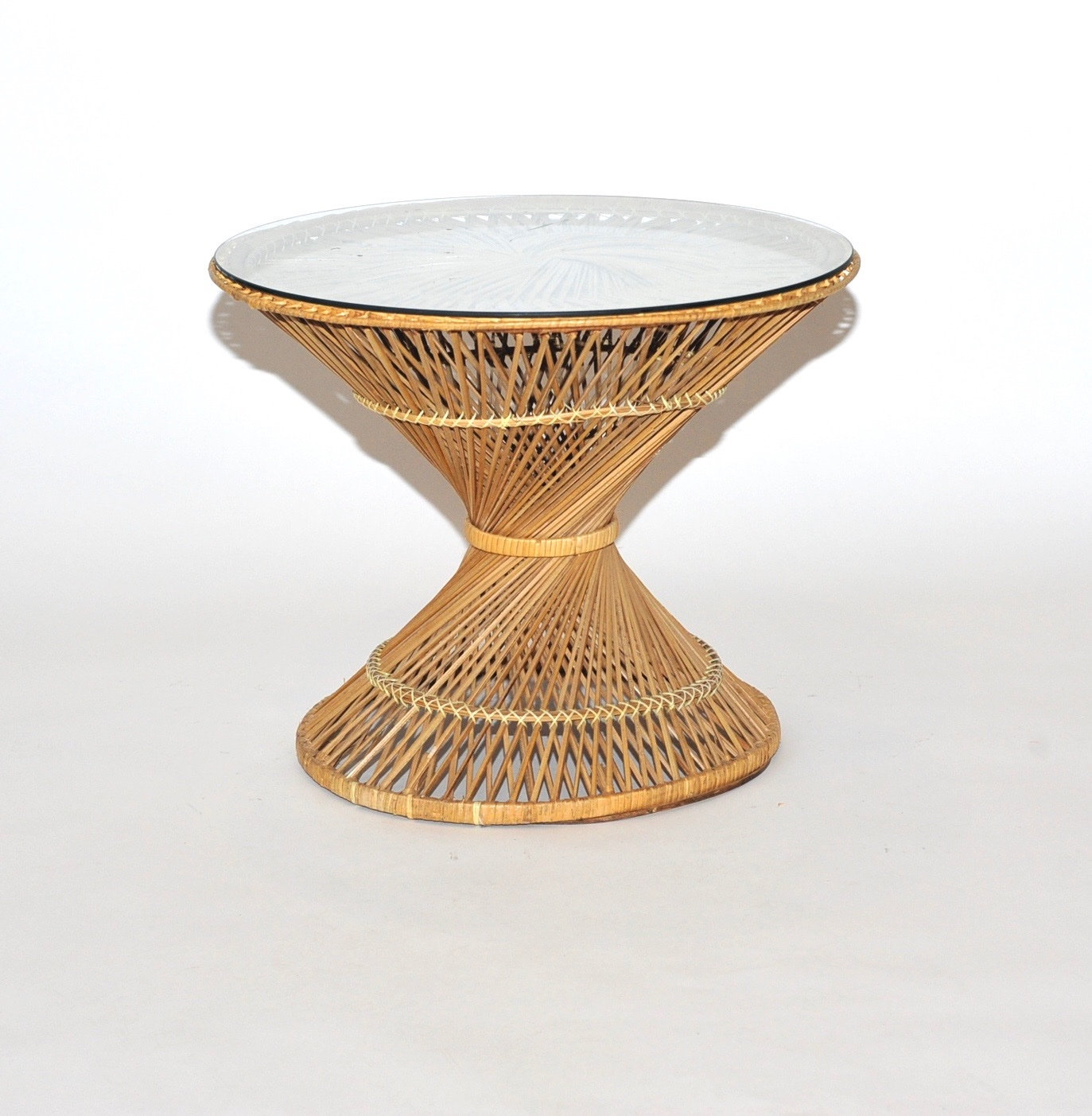 Round Rattan Side Table with Glass Top