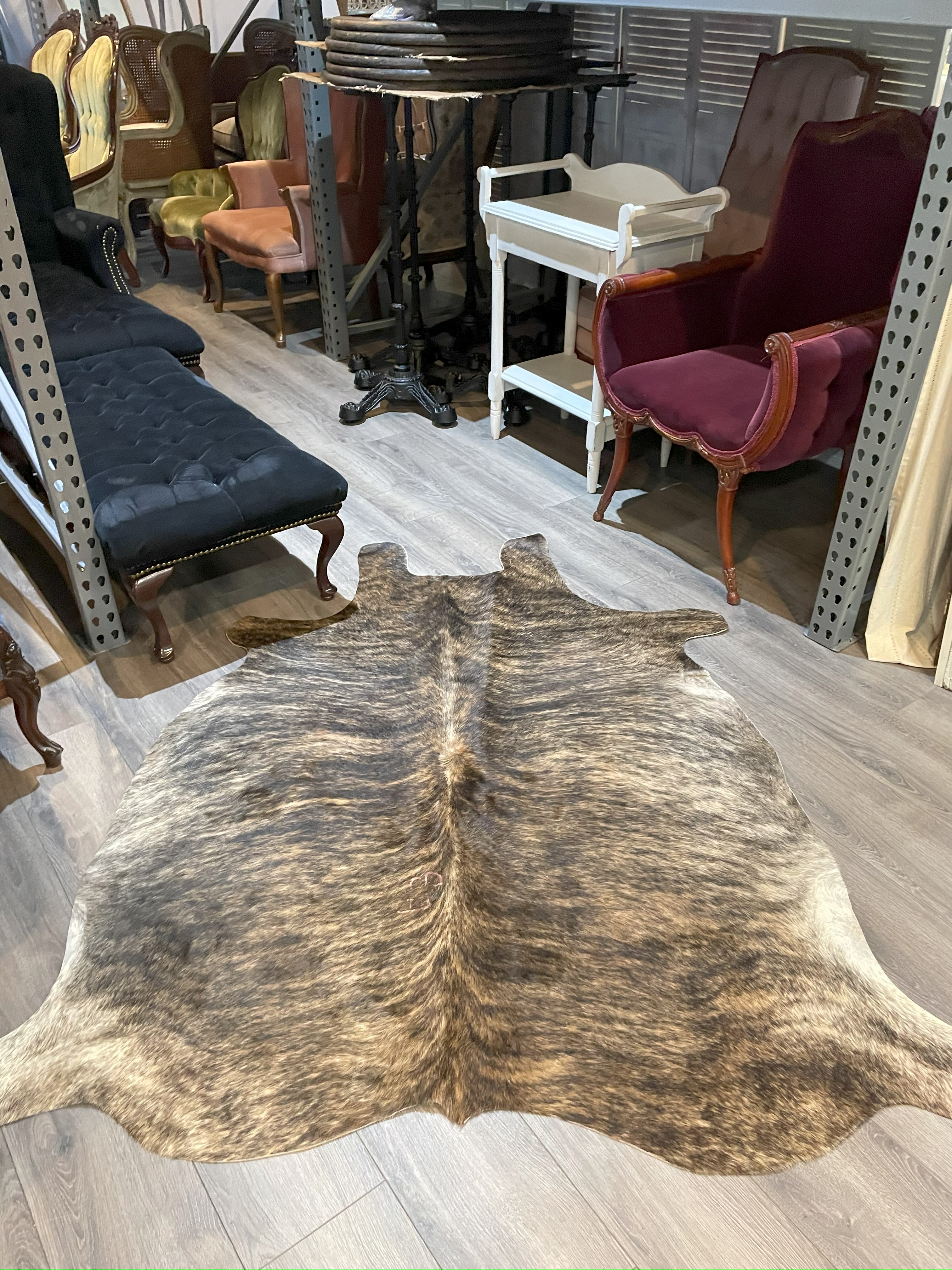 Genuine leather black brindle cowhide rug