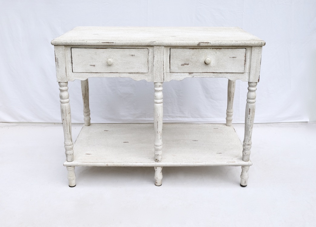White distressed buffet with 2 drawers