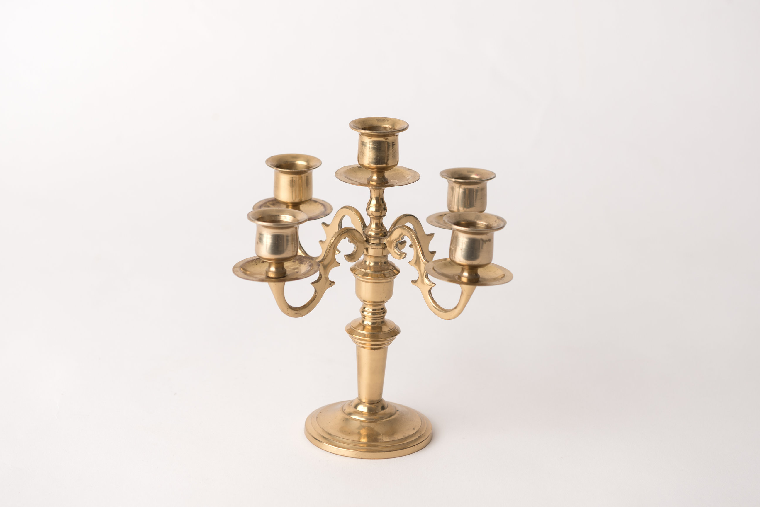 Short Brass Candelabra with 5 Prongs