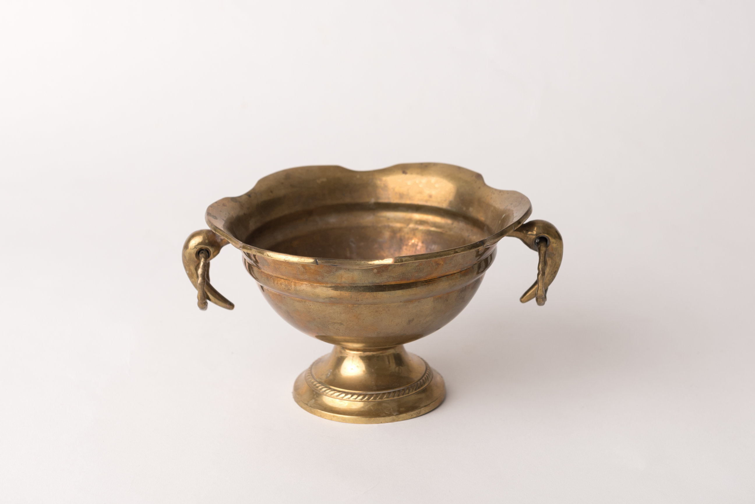 Small Brass Bowl on Pedestal with Talon Handles