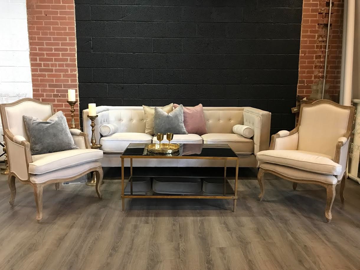 Named after one of Greensboro's most prestigious neighborhoods, The Starmount Collection is timeless and elegant. Eva's neutral color, paired with our French-inspired Adelaide chairs, allows this grouping to fit well in any space. Add our gorgeous black and gold coffee table and 4 pillows of your choice and you have the perfect lounge.