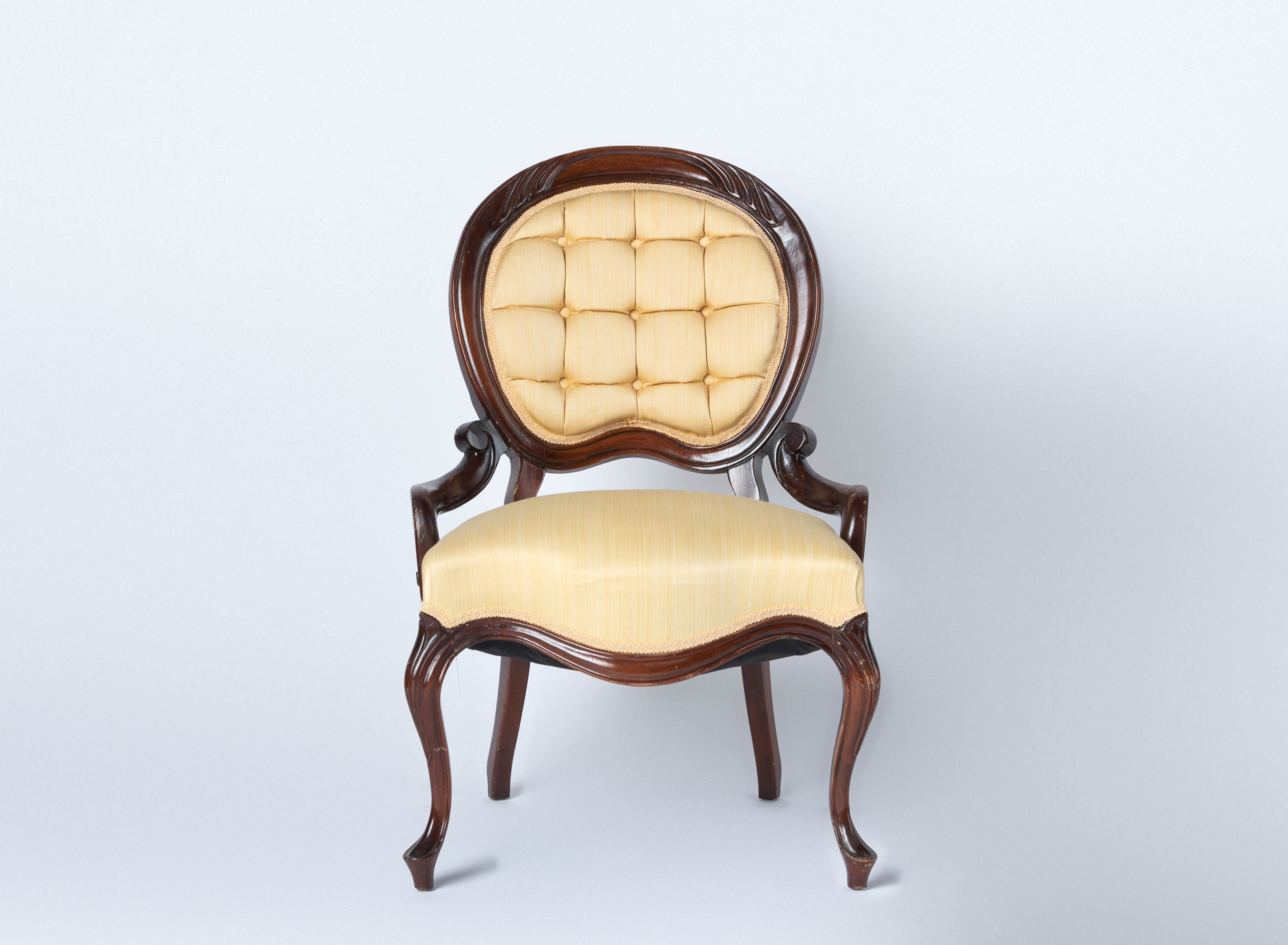 Small bright yellow tufted chair
