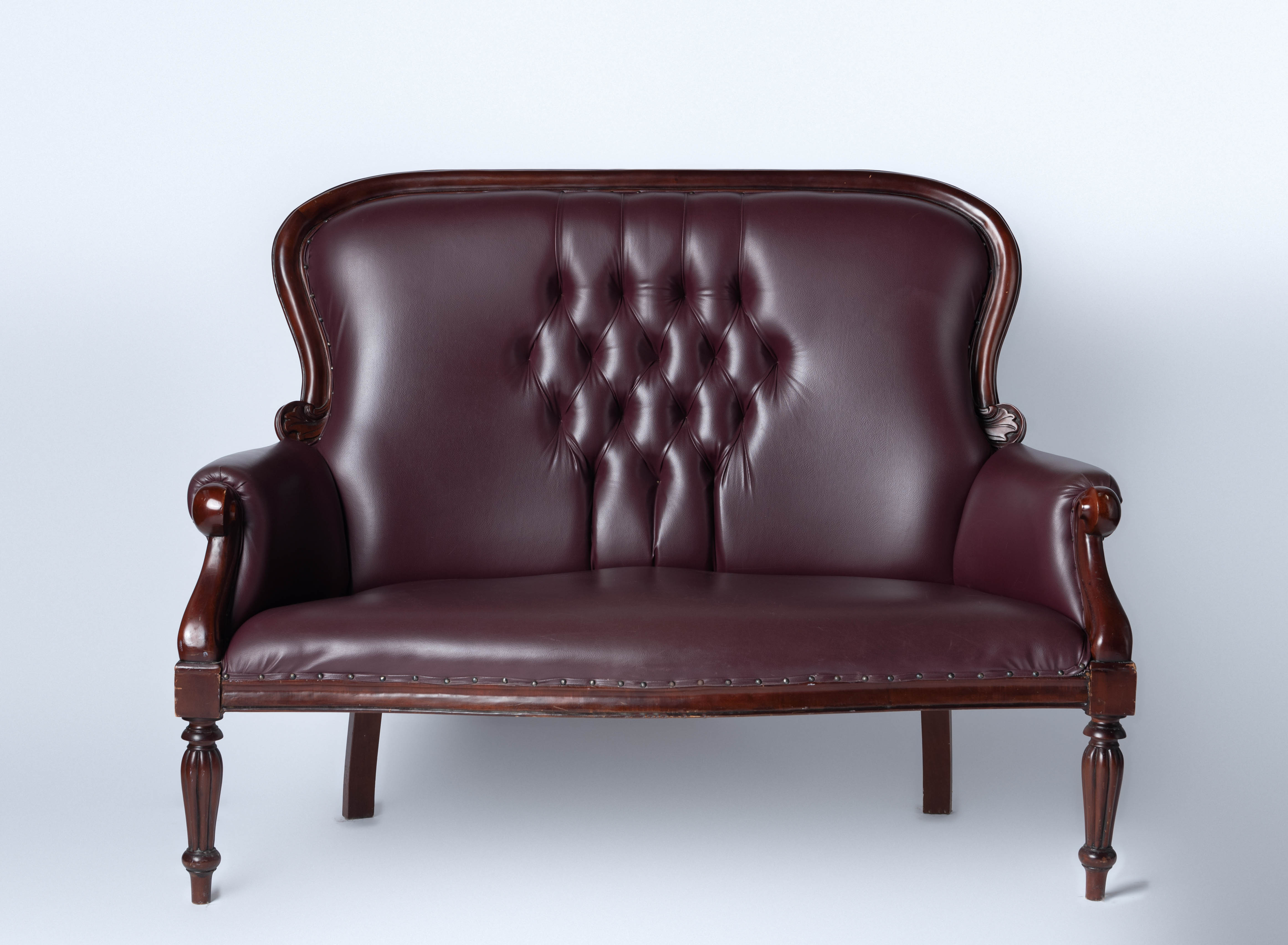 Purple faux leather tufted settee