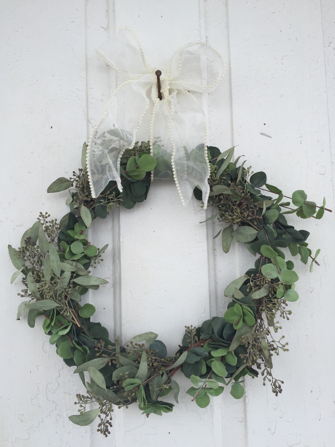Wreath with Cream Ribbon